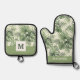 Green Tropical Palm Leaves Pattern Oven Mitt & Pot Holder Set