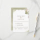 Elegant RSVP card with ability to add on the bottom meal options or personal message for guests. Soft green watercolor stains encasing card and exquisite watercolor palm leaves, foliage and flowers detail in right corner Design in green, olive, white, cream, peach, lavender and lilac hues. Back in elegant green watercolor texture. Part of our "Palm Leaves Floral Green Collection" with a variety of coordinating products available.