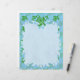 Green sea turtle in cutout style against chequered blue background. Unlined stationery. Blank letterhead paper with stylised flame border.