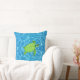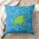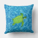 Green turtle on turquoise water cushion