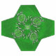Pictured on green are green turtles in a dot art design