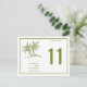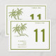 This table number card is clean and simple featuring two green palm trees and a border around the outside edge in the same green colour. The bride & groom's names as well as the wedding date are beneath the palms. The table number is clear and readable. The reverse side is the exact design so that it can be seen from both sides. It's perfect for tropical, beach, coastal, seaside or ocean wedding decor.