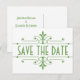 Simple and elegant Fancy Ornamental Save the Date Postcard in green and white featuring a sophisticated art deco style ornamental flourish border. Easy to customise, simply add your wedding details in the text fields provided. Click "Customise It" to find more personalisation options.