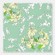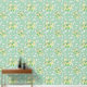 A pattern of light yellow flowers with white accents against a green background.