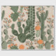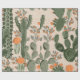 Green vintage succulent cactus and orange flowers wrapping paper