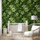 Green floral pattern with light green flowers and green leaves, like greenery.