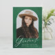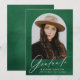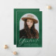 Celebrate your graduate’s achievement with this elegant graduation announcement, featuring a stylish arch frame that highlights their photo against a timeless green watercolor background. "Graduate" is beautifully written in white modern calligraphy, with the graduate’s name, school, and graduation year displayed below for a personal touch. The back of the card showcases a coordinating green watercolor design with space for additional text and photos, perfect for sharing memories and future plans. Ideal for high school and college graduates, this sophisticated announcement makes a lasting impression.