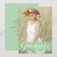 Announce your graduation to family and friends with this customizable class of 2023 graduation card. It features white modern calligraphy on a green watercolor splash. Personalize this calligraphy graduation announcement card by adding your photo, name and school name. This photo graduation announcement card is perfect for high school or college graduations.