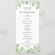 Nature theme wedding program rackcards with elegant green watercolor leaves. Perfect for spring greenery weddings and modern botanical garden events.