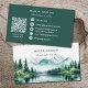 Green Watercolor Mountain Adventure Guide Qr Code Business Card