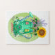Green Watering Can Cottage and Sunflower Jigsaw Puzzle
