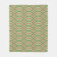 This medium fleece blanket has a Boho design of green and orange waves on a field of light green.
