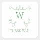 Green Whimsical Flourish Monogram Thank You Square Sticker