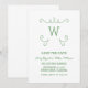 Modern and simple Whimsical Flourish Monogram Save the Date Invitation featuring an elegant swirl motif in green. Easy to customise, simply add your initial and wedding details in the text fields provided. Click "Customise It" to find more personalisation options.