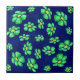 Green Whimsical Flowers Daisies on Blue Background Ceramic Tile