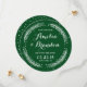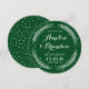 Whimsical and modern save the date announcement featuring winter wreath and polka dots pattern on green background. This design is perfect for winter and holiday weddings. Other colours are available.