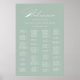 This green white alphabetical seating chart is perfect for a rustic wedding. The simple and stylish design features classic and fancy script typography in a green background.