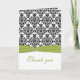 Green, White and Black Damask Thank You Card