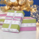 Green, white and pink stripe with ornaments wrapping paper