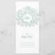 Sage grey green and white wedding dinner menu. Edit this 4 course menu with your own meal option wording. Simple yet modern hand drawn leaves and monogram design. © Original hand botanical drawing and design by Sarah Trett for www.mylittleedenweddings.com exclusively on zazzle.