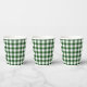 Get ready for a party or picnic with paper cups featuring a classic green and white buffalo check pattern.