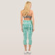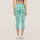 Green White Chequered Gingham Plaid Pattern Capri Leggings