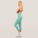 Stylish capri leggings with a green and white trendy buffalo plaid lumberjack checked pattern print.
