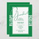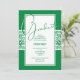 Damask band in green and white bordered in green graduation party invitations. SEE ALL COLORS pre-done in our store.