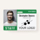Employee ID badge with a clean design in green, and white. Employee ID badge personalised with photo, name, title, ID number, and your business logo.