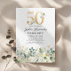 Set the tone for a memorable milestone celebration with our 50th birthday party invitations. Featuring rustic green foliage, elegant white watercolor florals, and gold accents. Paired with a chic fifty birthday celebration text template that you can personalise, these invitations are a perfect blend of elegance and charm. Get ready for the ultimate 50th birthday bash!