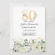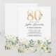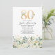 Set the tone for a memorable milestone celebration with our 80th birthday party invitations. Featuring rustic green foliage, elegant white watercolor florals, and gold accents. Paired with a chic eighty birthday celebration text template that you can personalise, these invitations are a perfect blend of elegance and charm. Get ready for the ultimate 80th birthday bash!