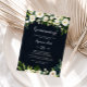 This green white floral royal blue Quinceañera invitation is perfect for a rustic 15th birthday party. The design features elegant watercolor white peonies with green foliage in a dark blue background.