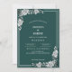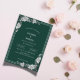 The deep emerald green background provides a rich contrast to the intricate botanical artwork, while crisp serif fonts convey a formal and upscale tone. Ideal for garden weddings, elegant soirées, and traditional ceremonies.