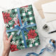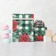 Green White Gingham Poinsettia Xmas Floral Pattern Wrapping Paper