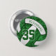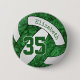 This team colours volleyball button features the realistic image of a stylised green & white volleyball that has an artsy floral kaleidoscopic pattern blended with its green panels - personalise with the athlete's name and jersey number - by katz_d_zynes