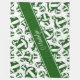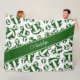 This cute volleyball team colours fleece blanket for girls features a pattern of varied size stylised green and white volleyballs turned every which way overlying a volleyball net detail graphic - the volleyballs' green panels are blended with an artsy, girly floral pattern - personalise her name in a sophisticated handwritten font on a bold, angled, full width green colour strip - background and name strip colours are customisable - by katz_d_zynes