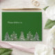 Winter christmas tree design in with white typography on green background wishing you a Merry Christmas with personalised family name. Perfect for your mailing accessories this holiday season. Personalise your family name and year and return address.