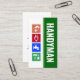Cover features a white and green layered design ; Inside the green layer is the job title "HANDYMAN" which you can change. To the left is a colourful handyman tools design which can represent some of the services that you offer e.g. the drill-measuring tape can represent home repairs-remodeling, the red power plug for electrical services, the blue faucet for plumbing repairs and the green brushes for interior design, painting works etc. The usage is left to your own understanding.