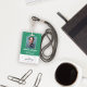 Vertical employee ID in green and white. Add photo, logo, name, title, ID number.