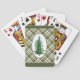 The design features an olive green and white diagonal plaid pattern. In the centre there is a white oval with an Evergreen tree.