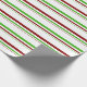 This Christmas inspired design features a green, white, and red coloured striped pattern. Wrapping paper like this might be fun to use when preparing gifts or presents being given in celebration of a birthday, a wedding, an anniversary, or some other event.
