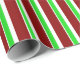 This wrapping paper design features a Christmas inspired green, white, and red coloured stripes pattern. Wrapping paper like this might be fun to use when preparing presents or gifts being given to celebrate a birthday, a wedding, an anniversary, or some other event.