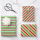 These festive Christmas and holidays inspired wrapping paper sheets designs feature stripes coloured green, white, and red. It might be fun to use wrapping paper sheets like these when wrapping presents being given when celebrating Christmas.