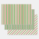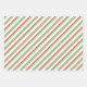 These festive, fun wrapping paper sheets designs feature Christmas and holidays style striped patterns having colours like green, white, and red. It might be fun to use festive wrapping paper sheets like these when wrapping gifts or presents being given to celebrate Christmas.