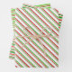 Green, White, Red Coloured Christmas Style Stripes Wrapping Paper Sheet