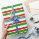 Green, White, Red Coloured Christmas-Themed Lines Wrapping Paper