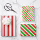 Green, White, Red Coloured Christmas Themed Lines Wrapping Paper Sheet