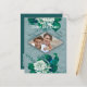 Green/ White Rose Flowers on Green pattern paper Announcement Postcard