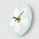 Green White Simple Daisy Gold Large Clock