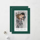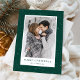 Simple, elegant holiday cards displaying your photo on the front framed in white with snow flurries against a dark green background. The back of the chic holiday card features space for two more photos and a custom message. Personalize the card by adding your custom holiday greeting.